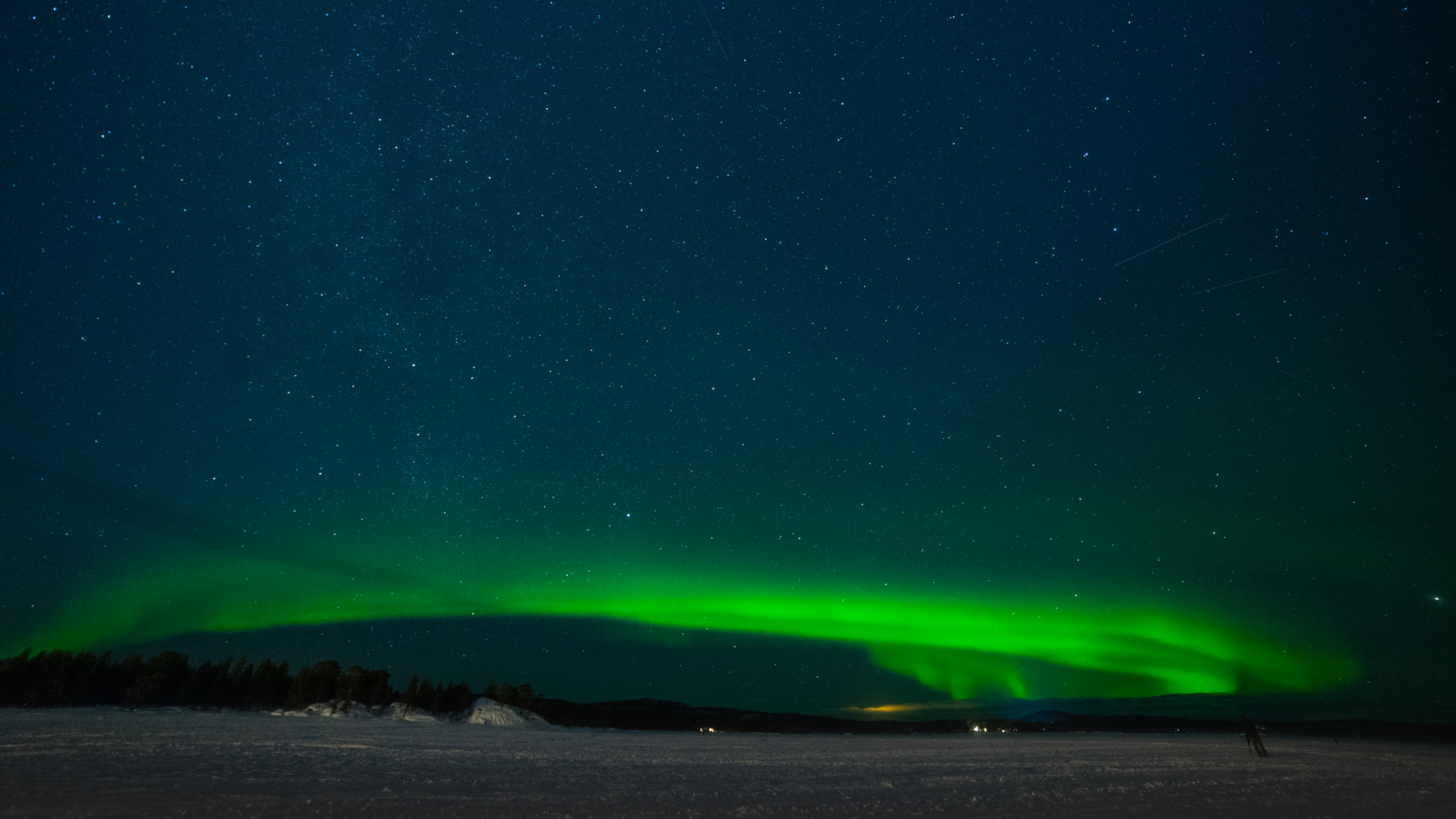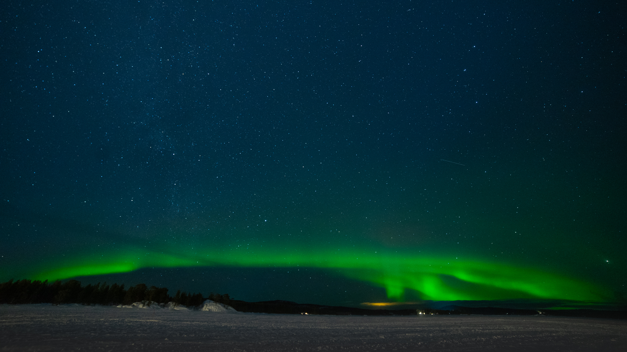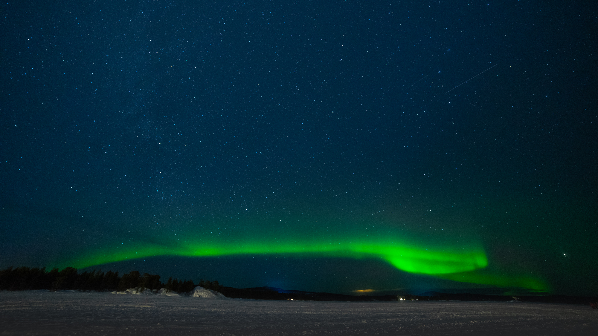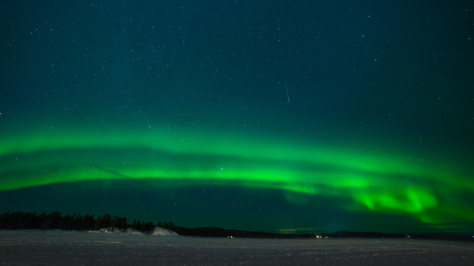 雲も星も地球も夜も、あらゆる事物は淀むことなくどこかへ向かって動きつづけていて、雪の大地に佇む「私」という小さな存在もまた、その循環の一部として、遠くの空を見つめているのでした。北の方角に光が現れたのは、それから間もなくのこと。