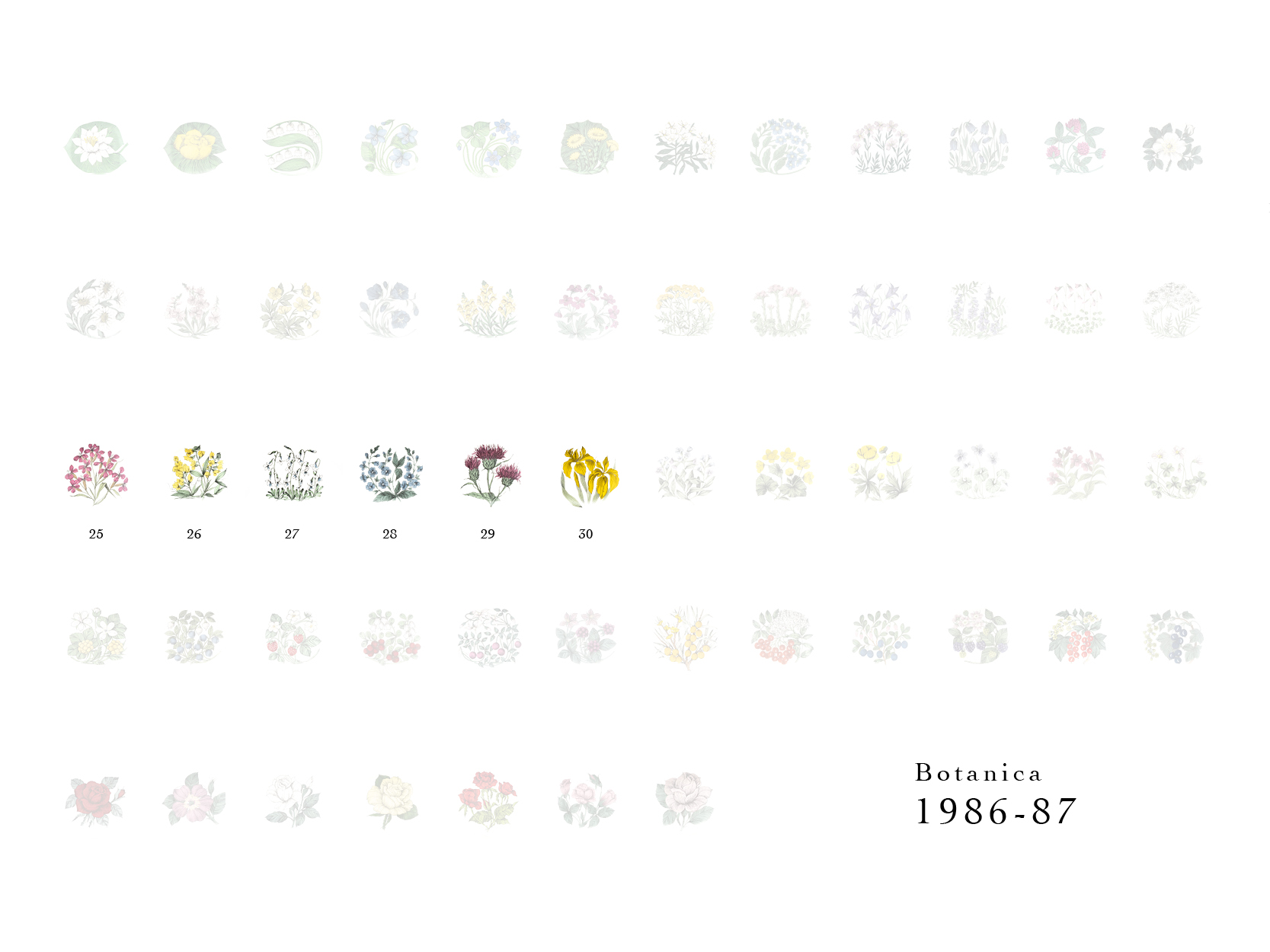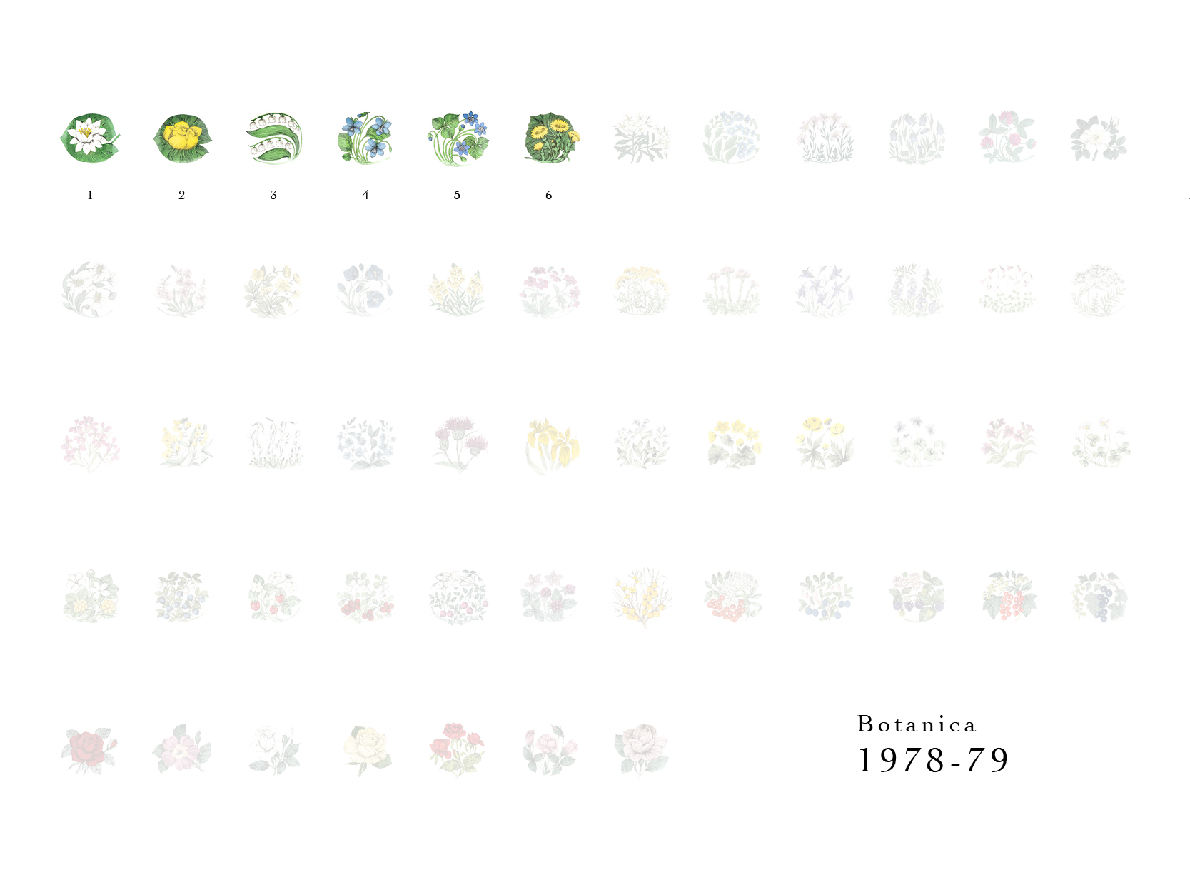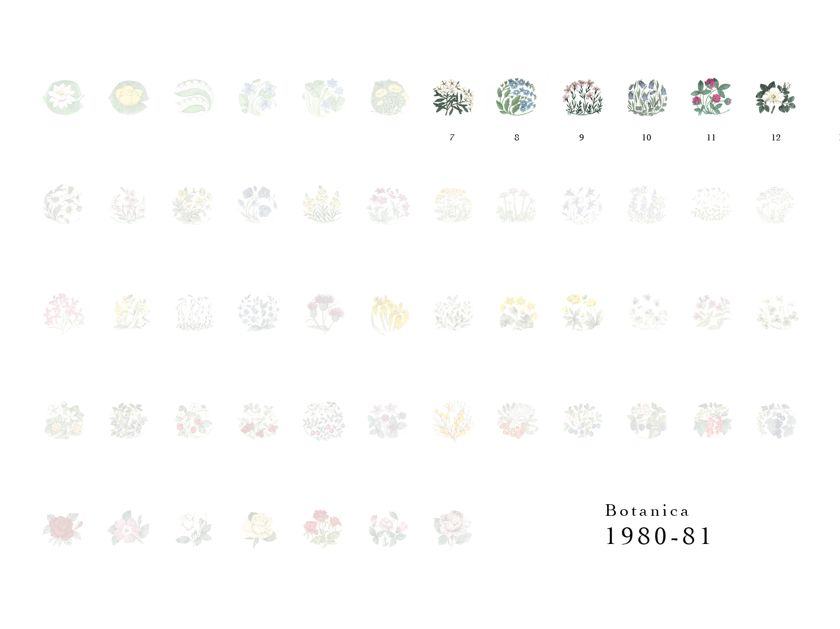 私たちlumikkaはこの美しいシリーズに魅了され、オンラインショップをはじめた当初より収集とリサーチを行っています。年代や名前、絵柄をひとつひとつ整理することや、それをわかりやすくビジュアライズすること、全ての絵柄を見つけて入手すること。どうしても、手間と時間はかかってしまうのですが、それでも、ボタニカシリーズが人の生活のそばにあり続けていてほしいという思いから継続的にご紹介をしています。