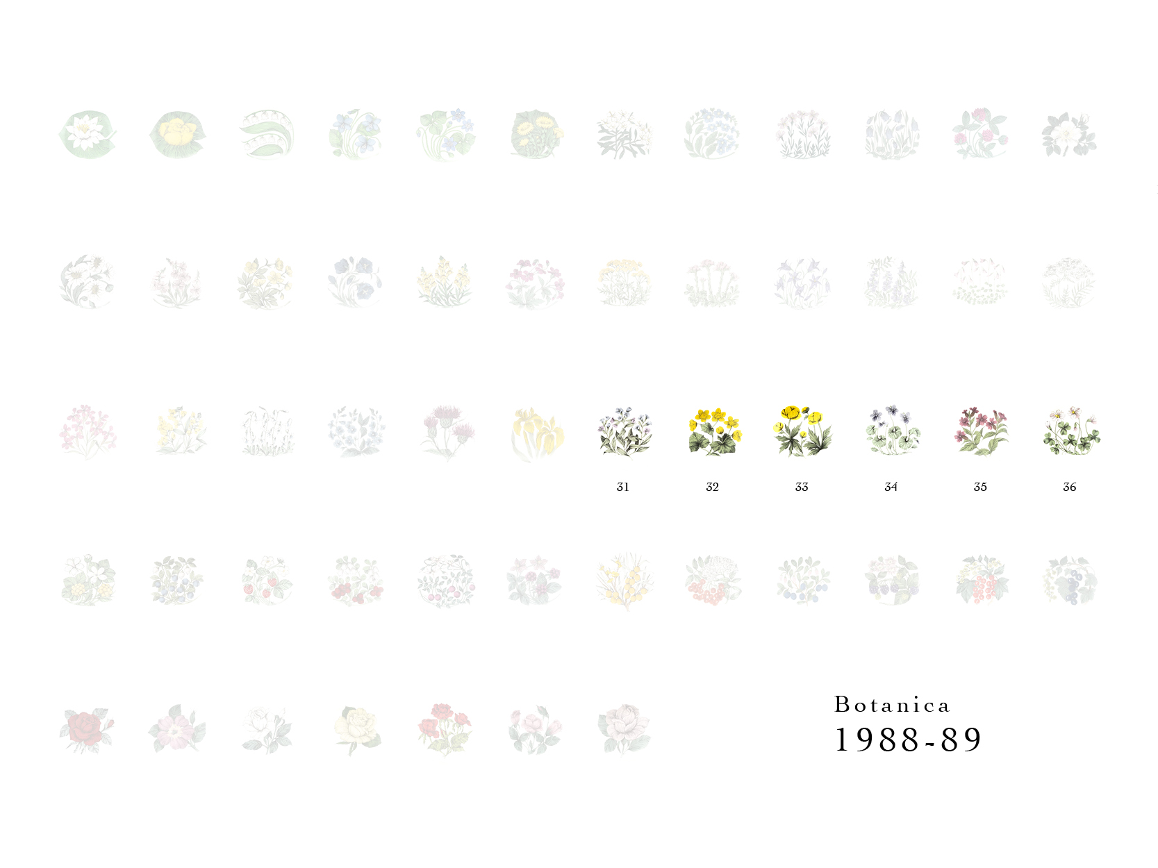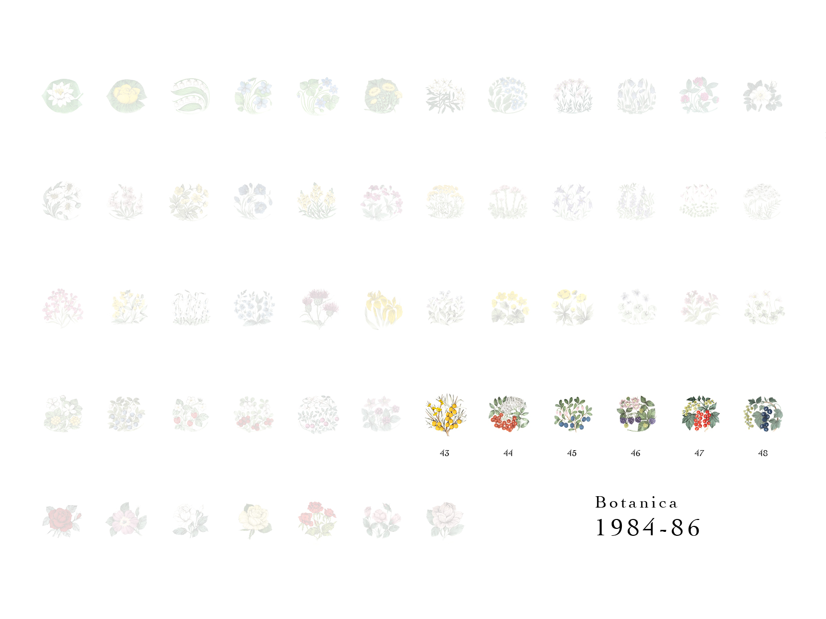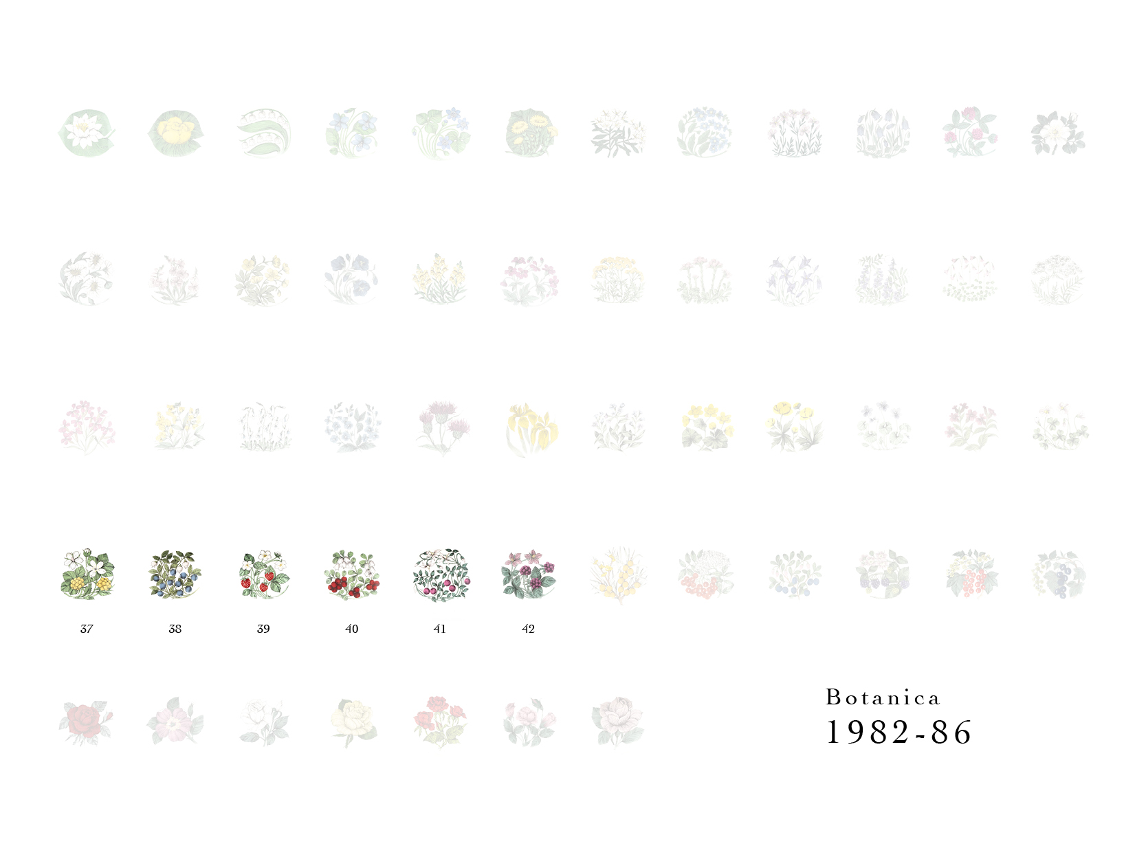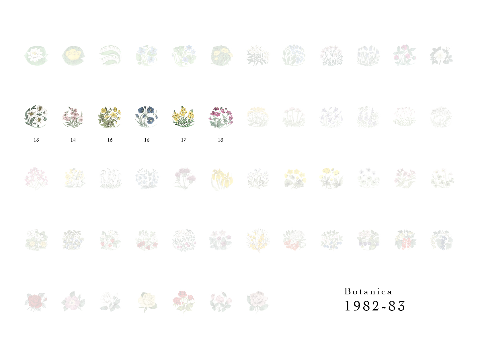 私たちlumikkaはこの美しいシリーズに魅了され、オンラインショップをはじめた当初より収集とリサーチを行っています。年代や名前、絵柄をひとつひとつ整理することや、それをわかりやすくビジュアライズすること、全ての絵柄を見つけて入手すること。どうしても、手間と時間はかかってしまうのですが、それでも、ボタニカシリーズが人の生活のそばにあり続けていてほしいという思いから継続的にご紹介をしています。