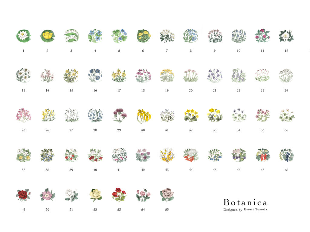 まるで植物図鑑のように描かれたこちらのシリーズは、フィンランドでも日本でも根強い人気があり、コレクションアイテムとして人から人へと巡り、愛され続けています。