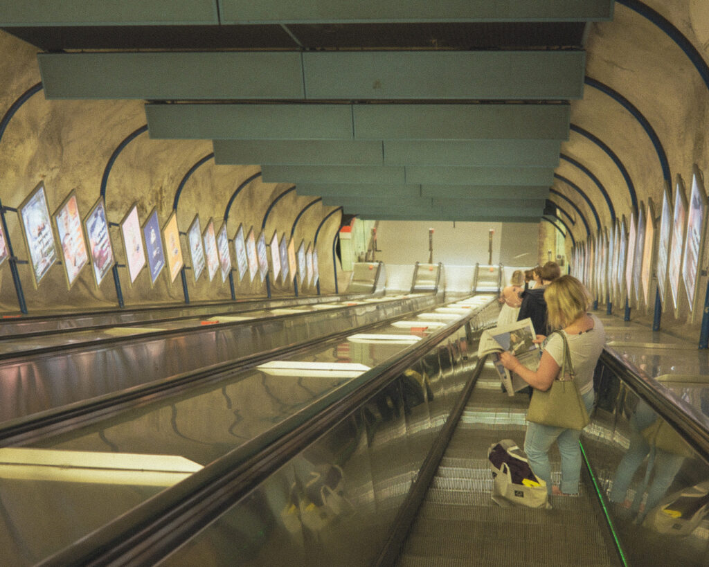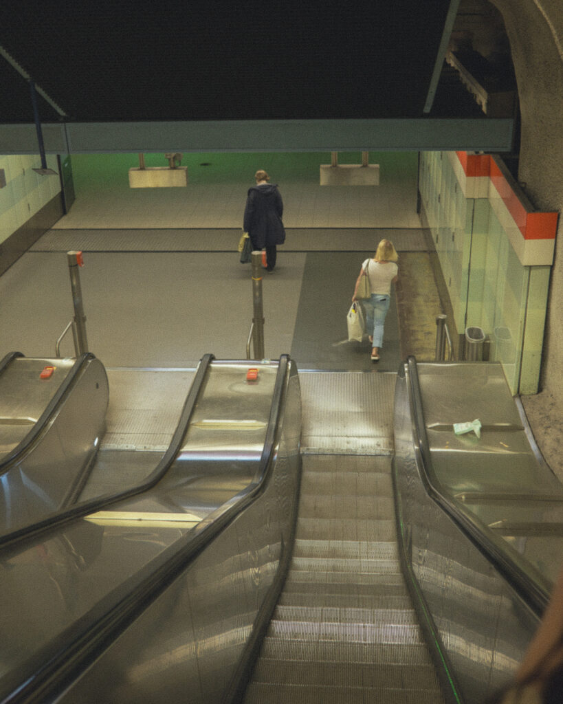 駅のある地下へ。太陽の光が届かないことが、かえって時間の感覚を取り戻す手助けをしてくれます。