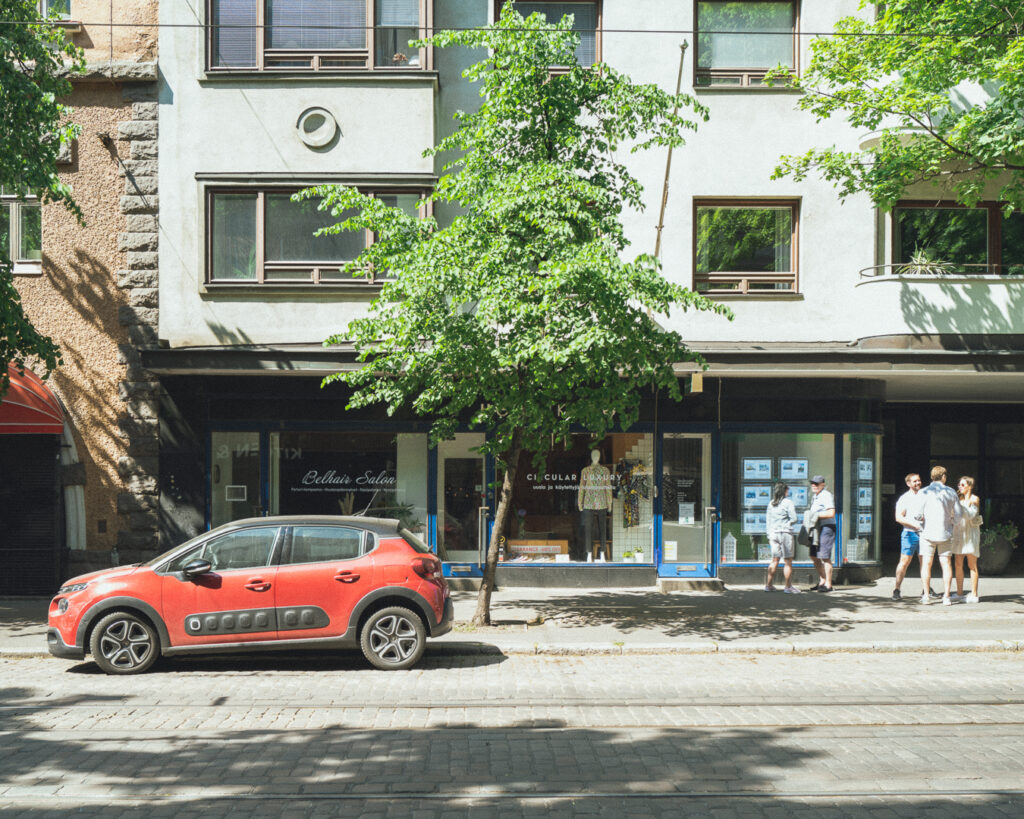 続いて、中心部にあるブレヴァルディ通りの壁と窓。トラムの走るこの道にはたくさんの樹木が植えられており、夏には緑が、秋には紅葉が街の風景に彩りを添えてくれます。