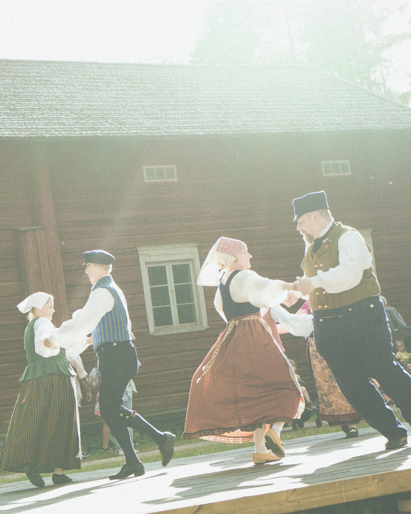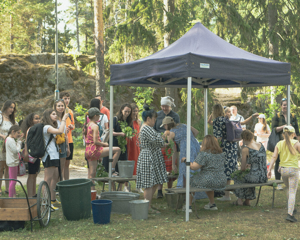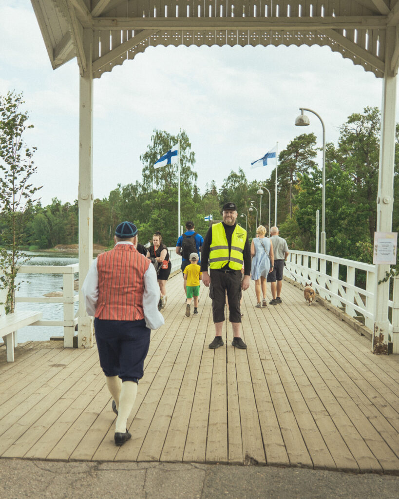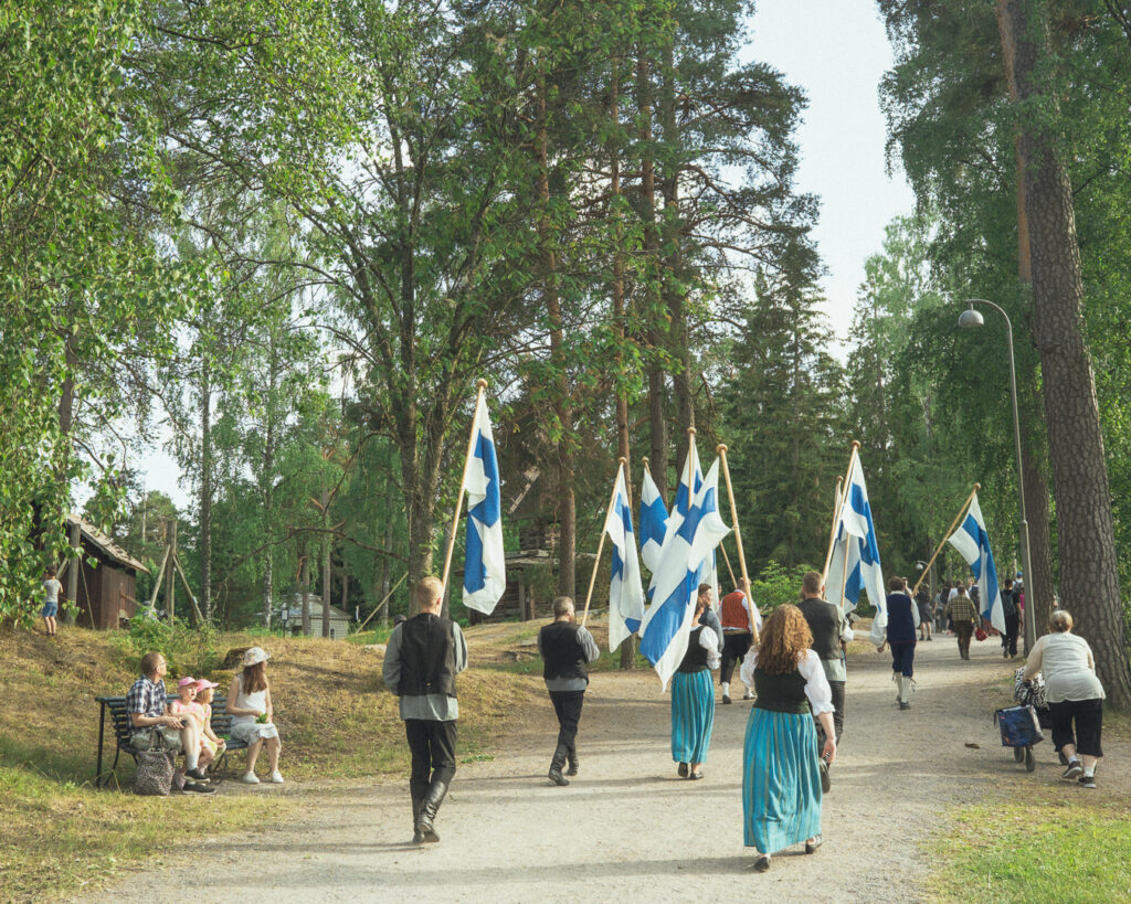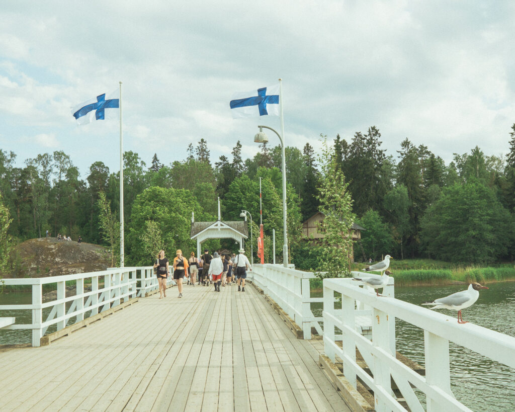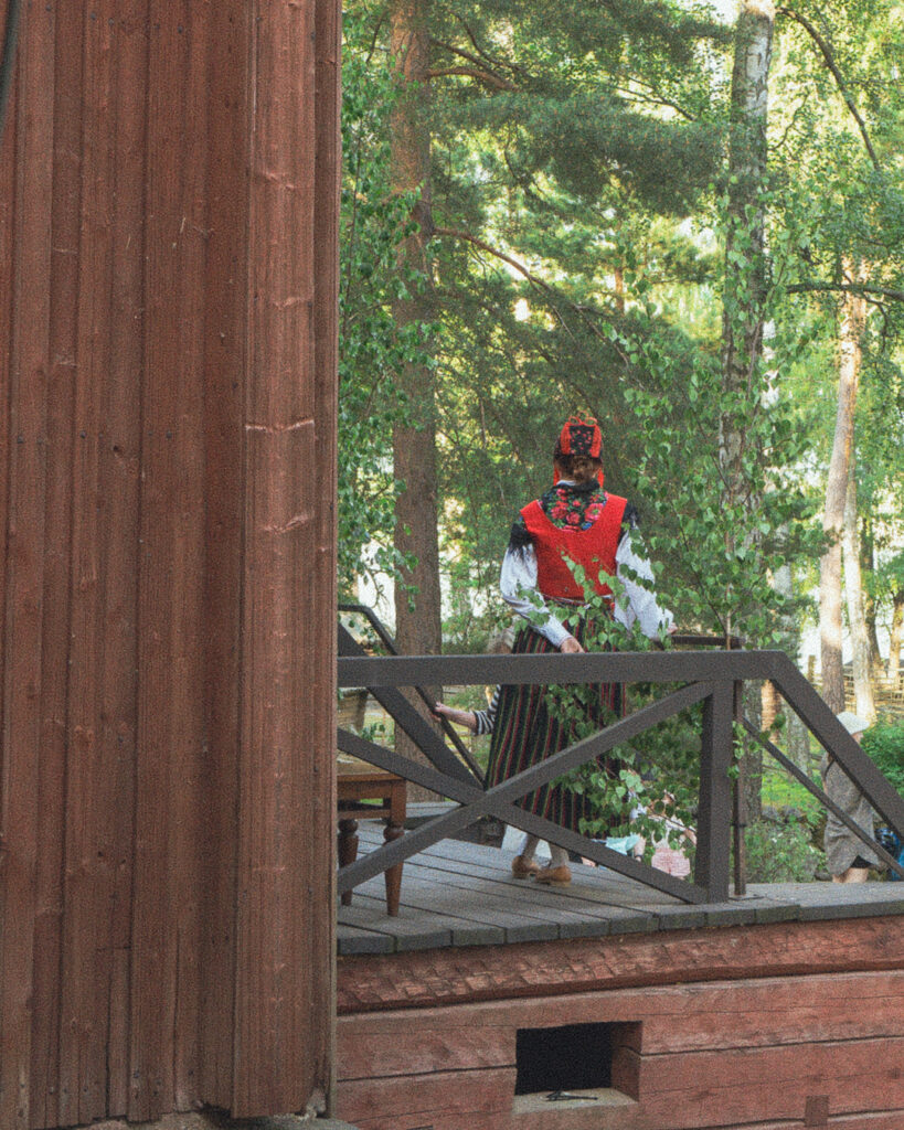 豊かな自然とおおらかな地形、伝統的な木造建築がひっそりと佇むセウラサーリ島。人々は思い思いに島を散策しながら草花を摘み、花かんむりをつくっています。