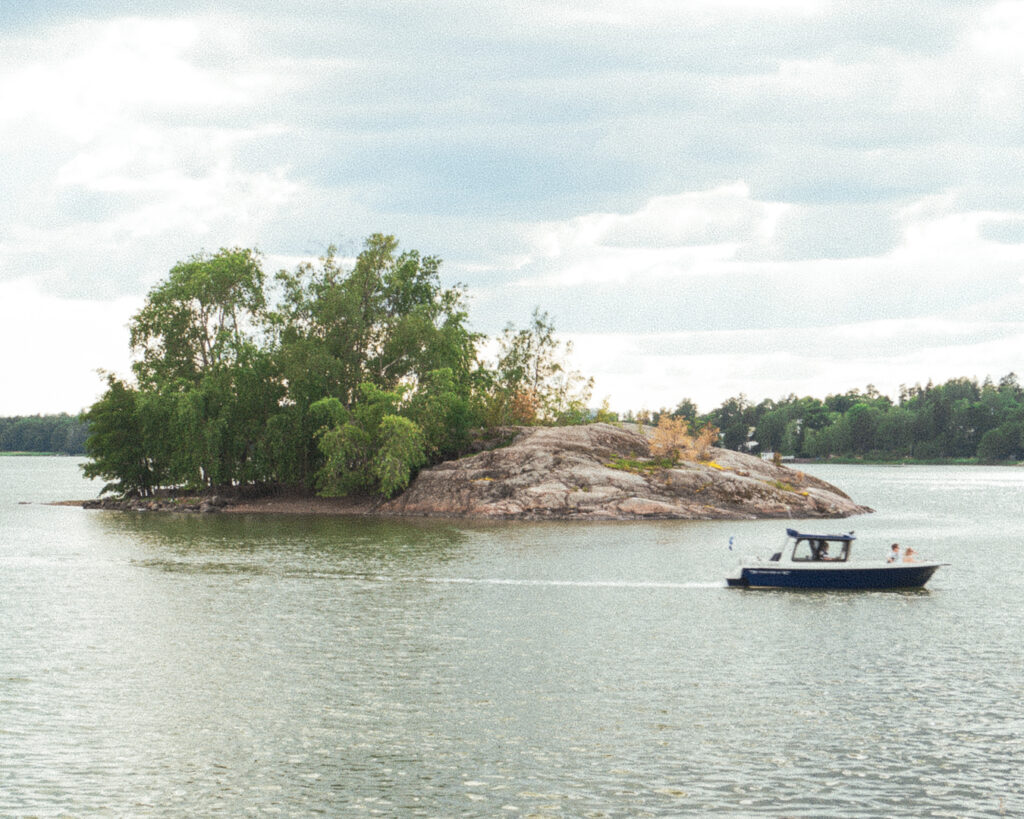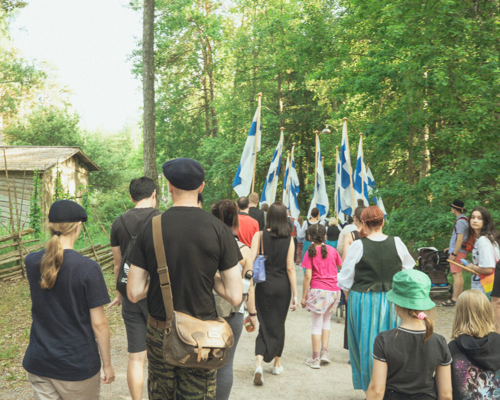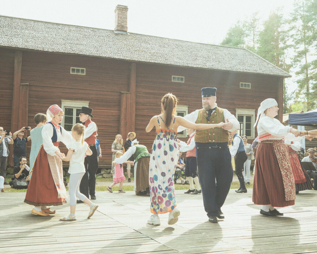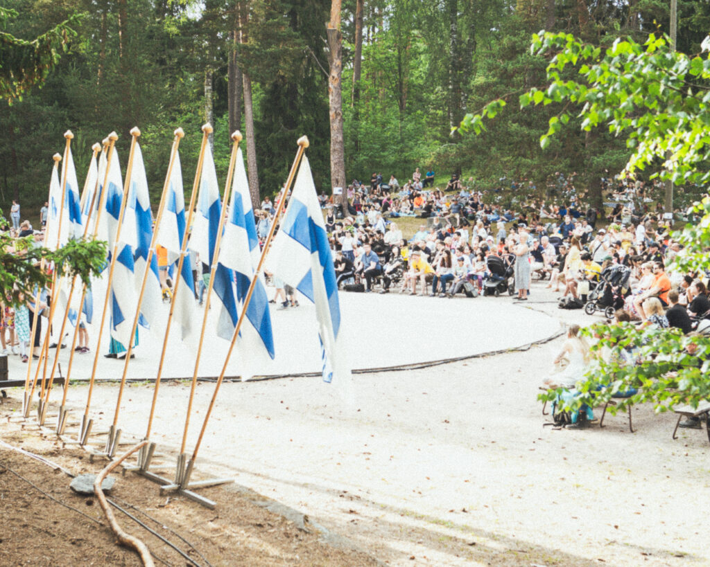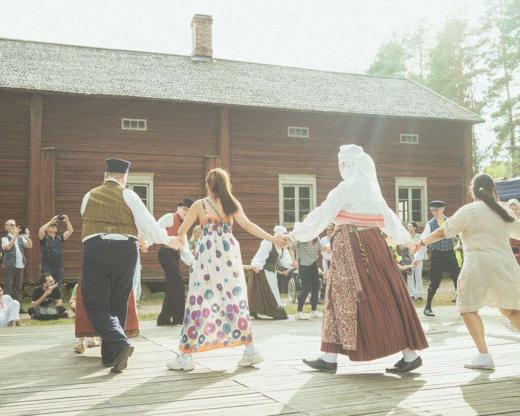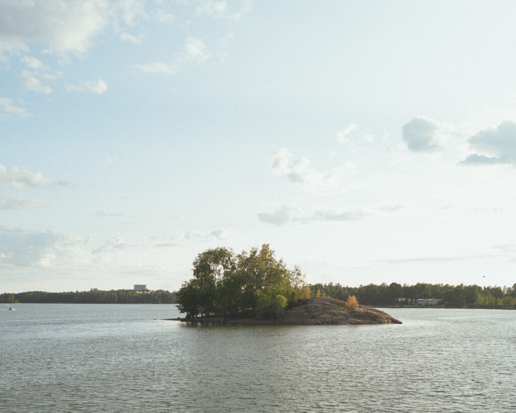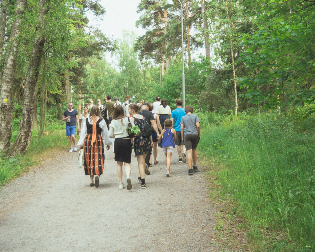 豊かな自然とおおらかな地形、伝統的な木造建築がひっそりと佇むセウラサーリ島。人々は思い思いに島を散策しながら草花を摘み、花かんむりをつくっています。