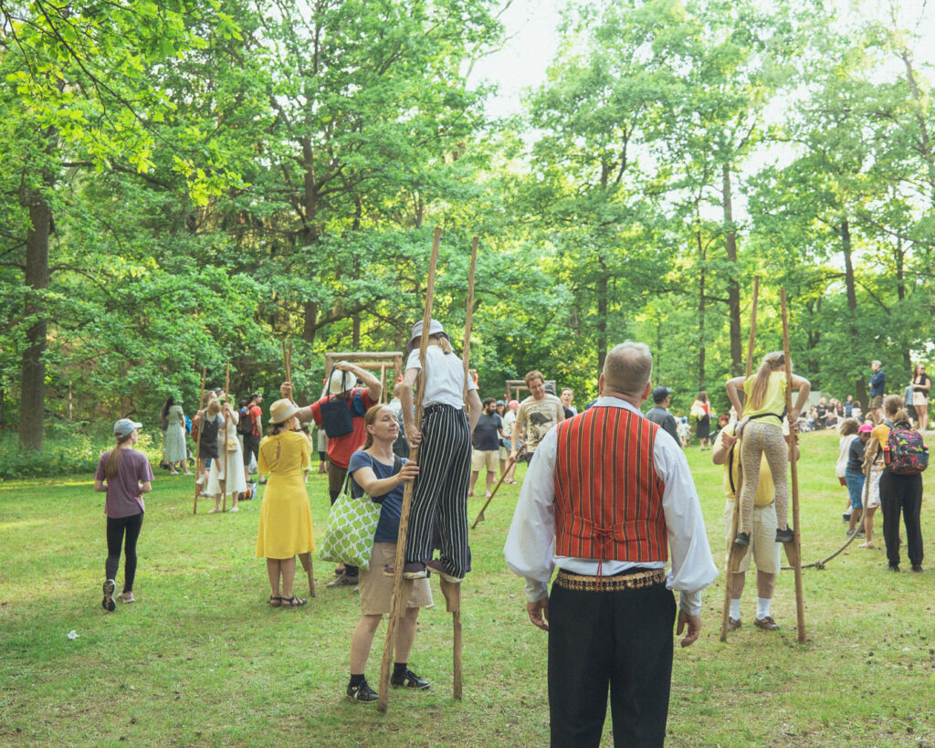 緑の広場には、竹馬や綱引きをして遊ぶ人びと。大人も子供も関係なしに、その時間、空間を存分に楽しんでいます。さらに先へと進むと、ひらけた場所へ。