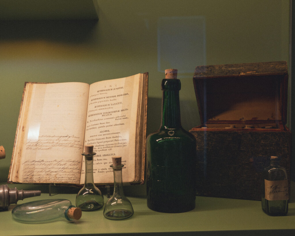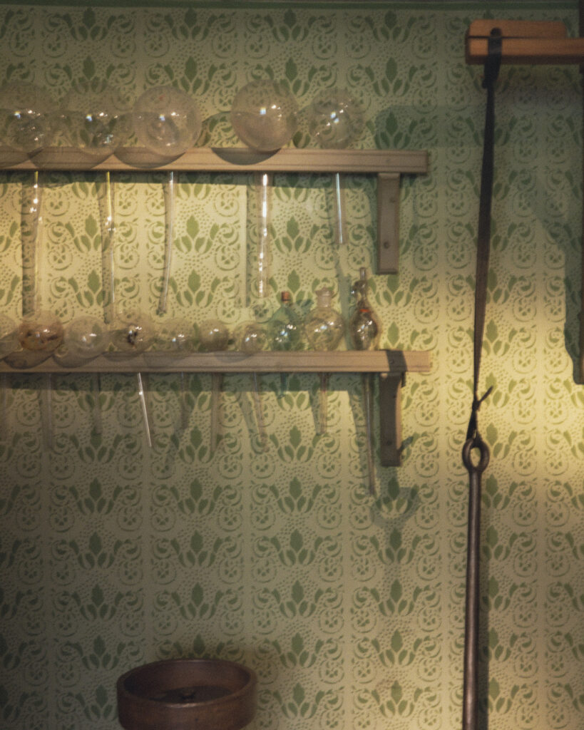 優れた計算機も機械もまだない時代。薬を調合することも、ガラスをつくることも、秤をつくることも、相当な技術が必要だったはずです。ひとことで「手仕事」と言っても、現代における手仕事とは意味も役割も異なるものだったのでしょう。残されたその痕跡には、その時代を生きた人間のたしかな生の痕跡が感じられます。