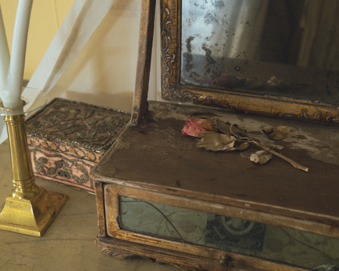200年ほどの時が過ぎた今見ても、優雅さや高貴な雰囲気が感じられるのはなぜでしょう。ゆらぐガラスを通った光が、ぼんやりと室内を照らします。