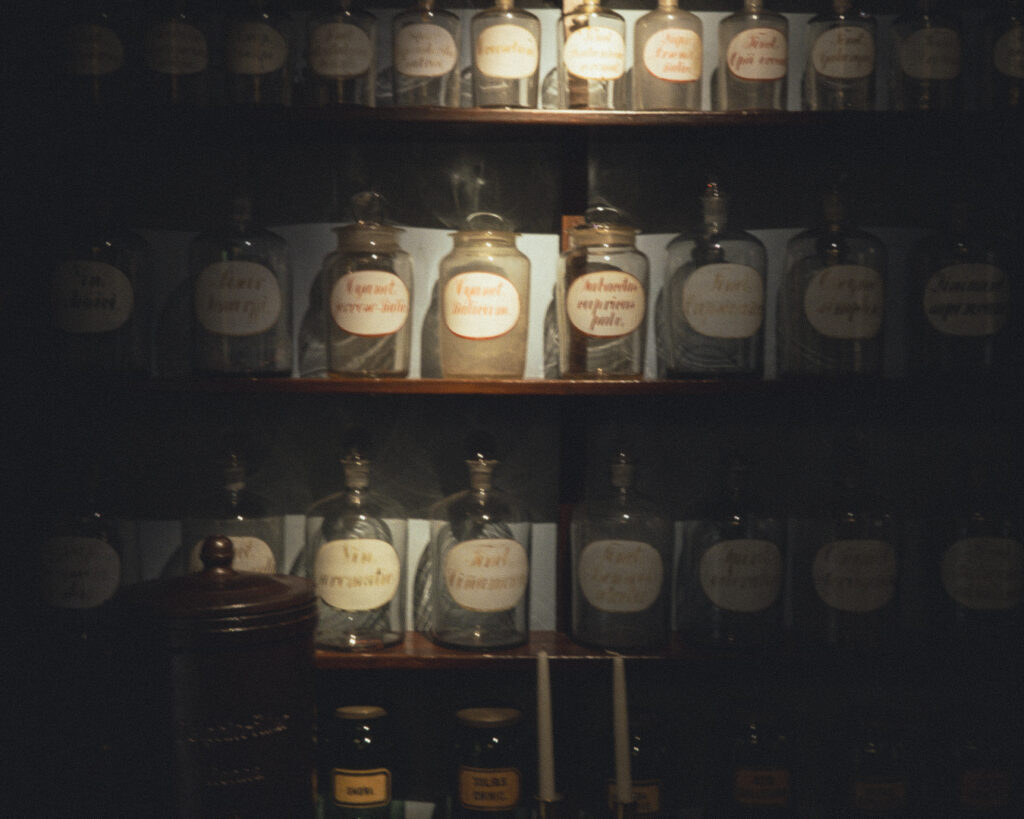 薬局だった頃のノートや薬瓶。ひとつひとつに個性があり、「もの」としての魅力に溢れています。