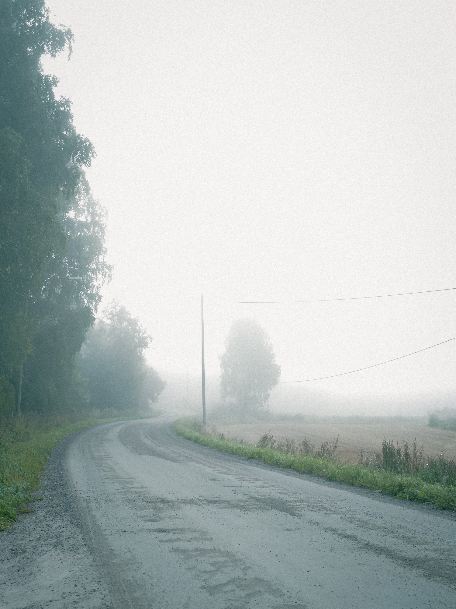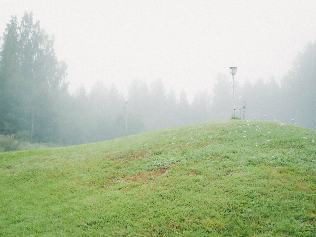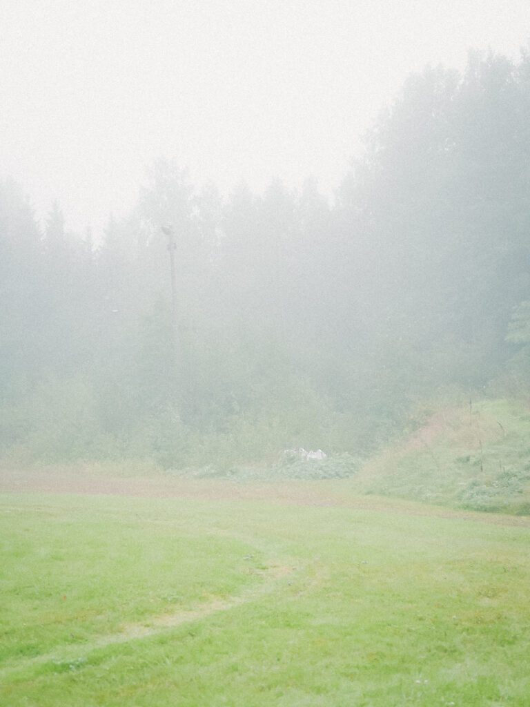 白い霧は視界の奥をぼかして薄め、見ている対象はいっそうはっきりと知覚される。風景は、まるでカメラの絞りを開いたように浅い空間の中で存在していた。