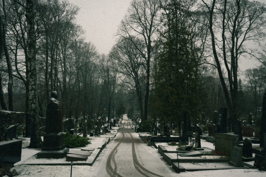 ヘルシンキに住んでいた頃は家の近くにちょうどよい散歩道があったので、雨や雪、波や空 ——つまり天気 を眺めるためによく散歩をしていました。教会とお墓のそばを通り抜け、ヒエタニエミビーチへと続く片道30分の散歩道です。