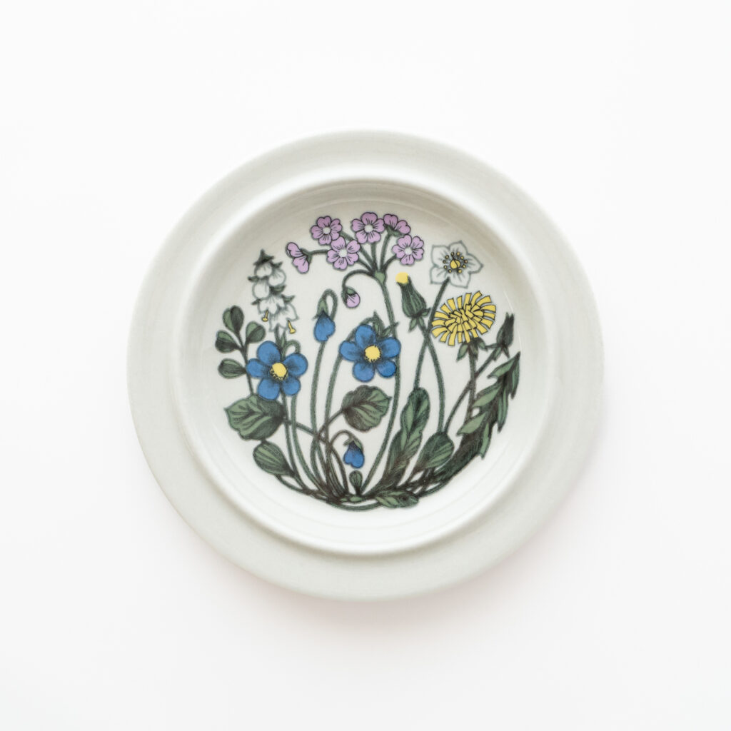 Botanicaシリーズは1978年から1989年にかけて製造されており、それを示す年代スタンプがきちんと残されています。加えて、こちらシリーズにはデザイナーのEsteri Tomulaの名前も合わせて記されています。