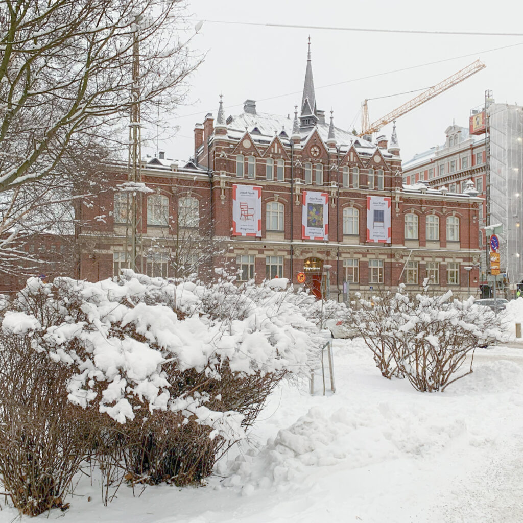 雪の白が街の色彩を引き立ててくれることもあります。これらはヘルシンキ市内で撮影したものですが、雪の白さがそれぞれ建物の質感と色彩をより美しく演出しています。派手すぎず、地味すぎず、主張しすぎない自然体な色のイメージはフィンランドデザインの重要なエレメントのひとつではないでしょうか。