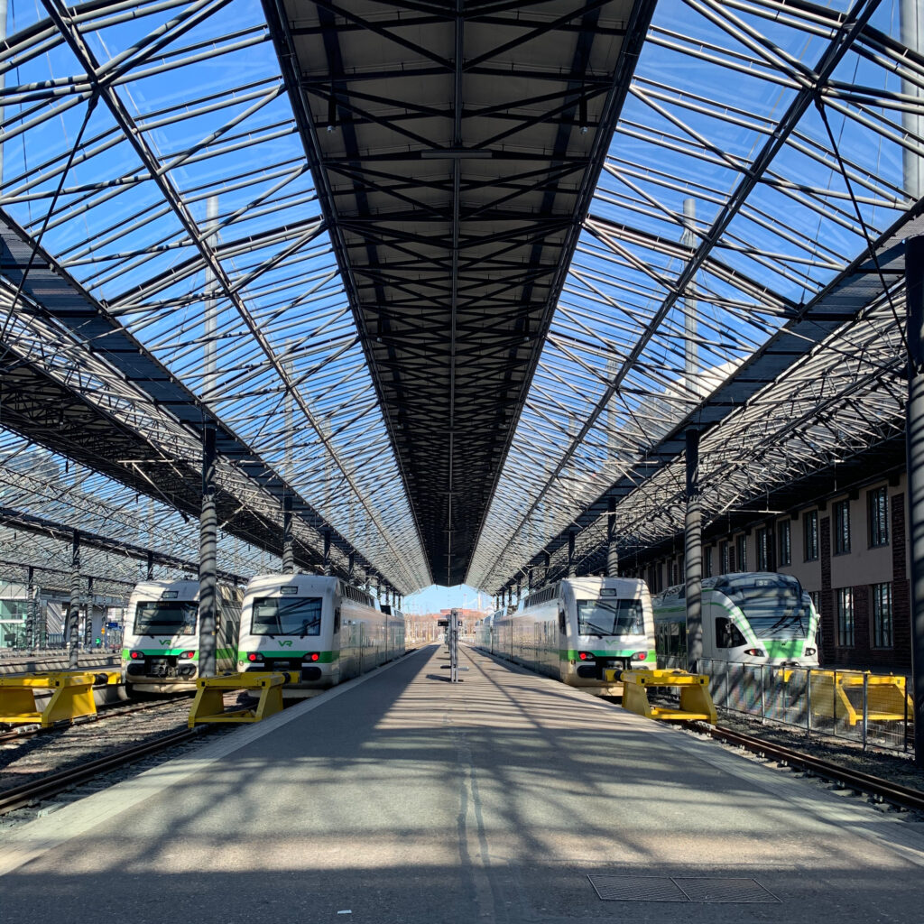 空港の次に出会う玄関口といえばここ、ヘルシンキ中央駅です。欧州の駅は改札が無いことが多いので、街と駅の空間が連続しています。そのため、出発時間まで周辺をぶらぶらと歩いていられたり、電車を降りてそのままトラムに乗れたりと何かと気持ちがよいものです。
