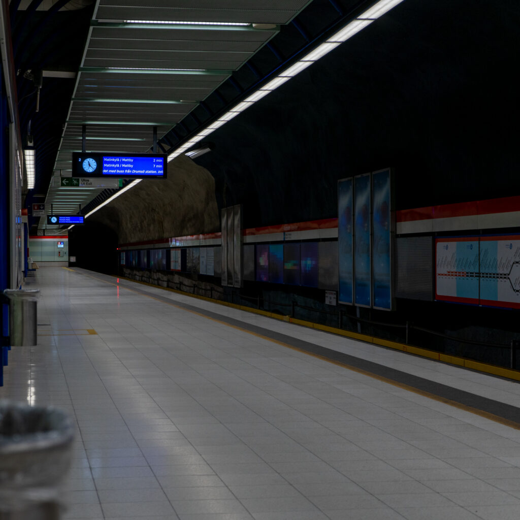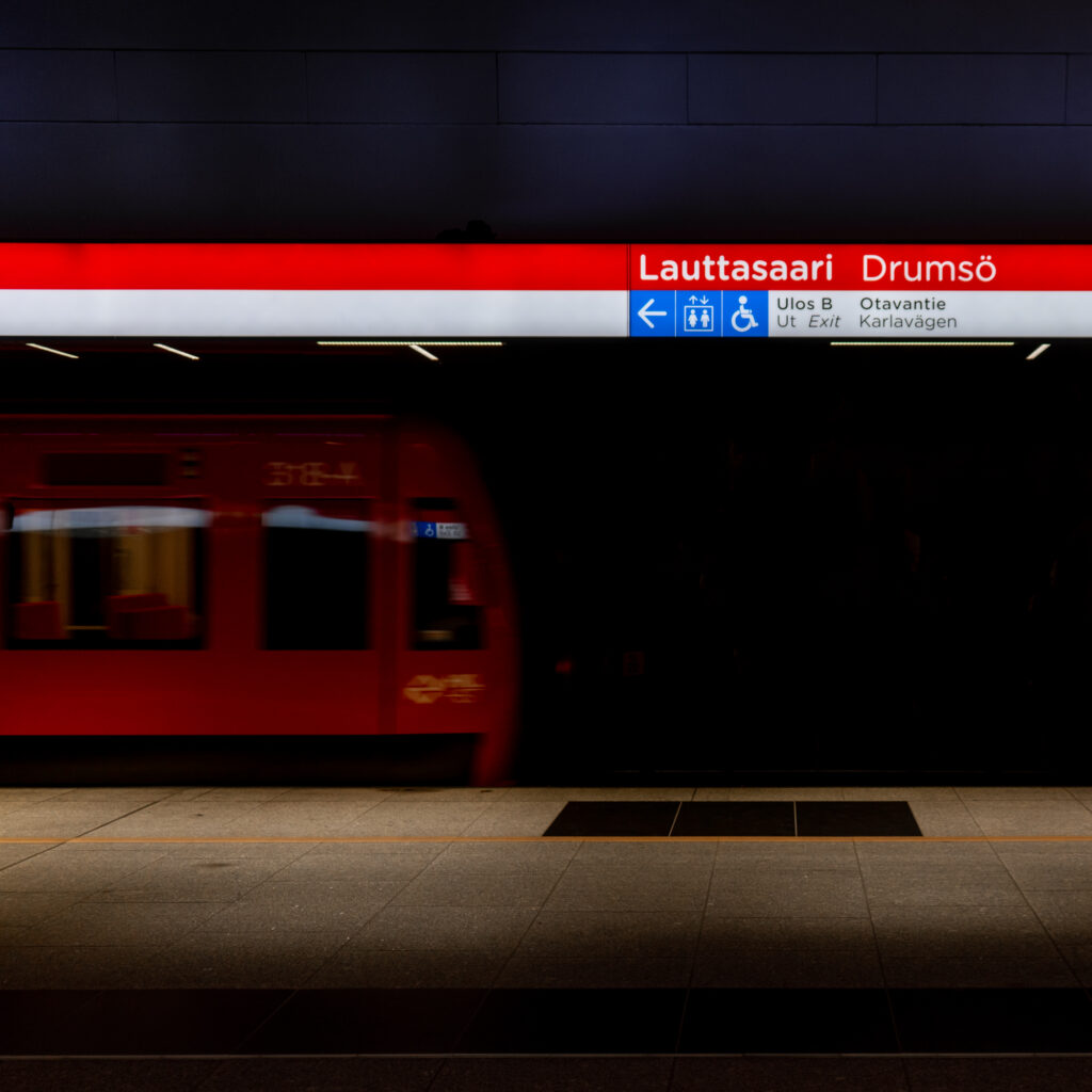 街の地下では小さな旅が絶えず繰り返されています。ヘルシンキ市内を繋ぐ地下鉄の駅も、日本とはちょっと違った空気が漂います。東京の地下鉄を見慣れた人からすると、足元の案内の少なさと、壁面の広告の少なさに驚くことかと思います。それは電車内部でも同様で、電車の色自体は派手なのですが、目や耳から入る情報が少ないためか、落ち着いた移動の時間を過ごすことができます。(もちろん乗車人数が少ないことも理由の一つです)