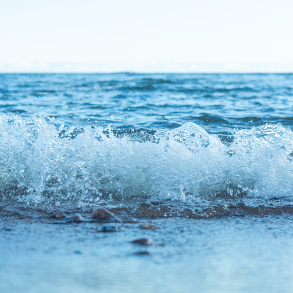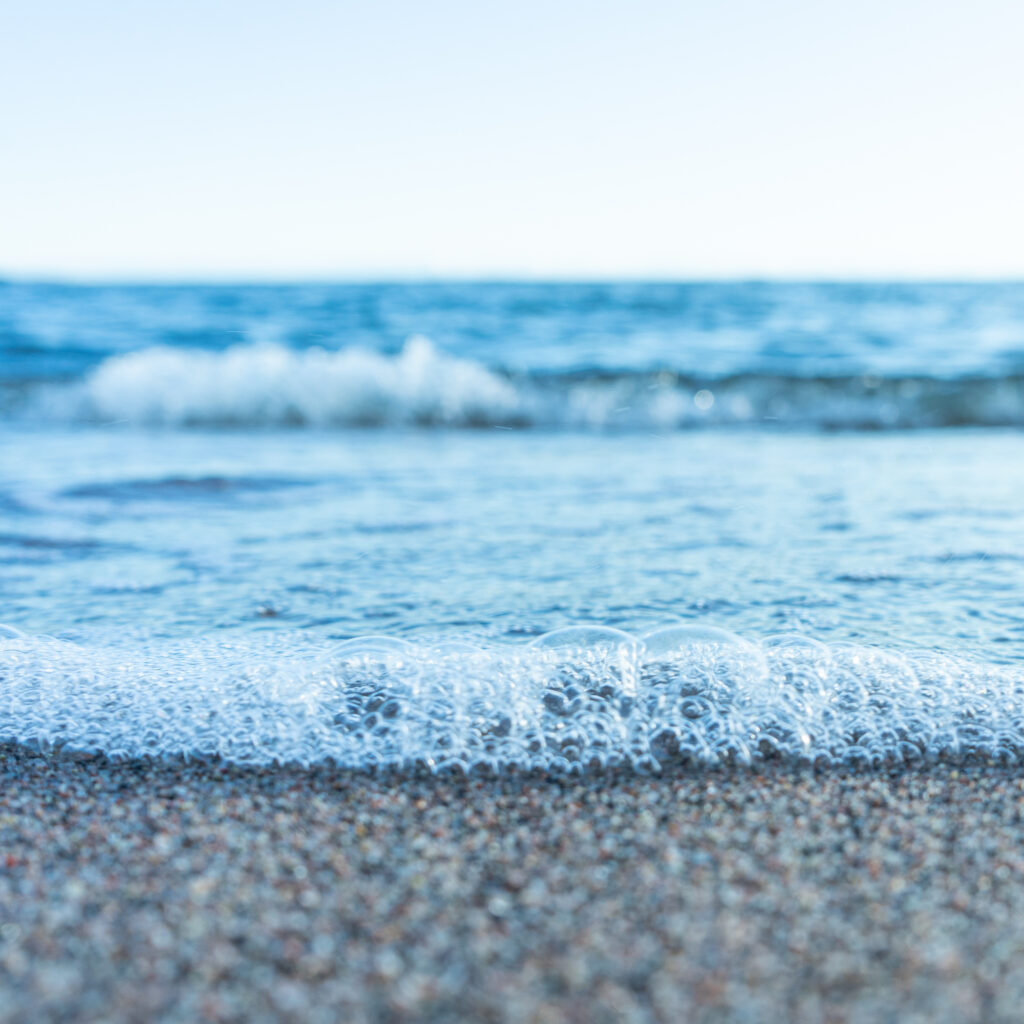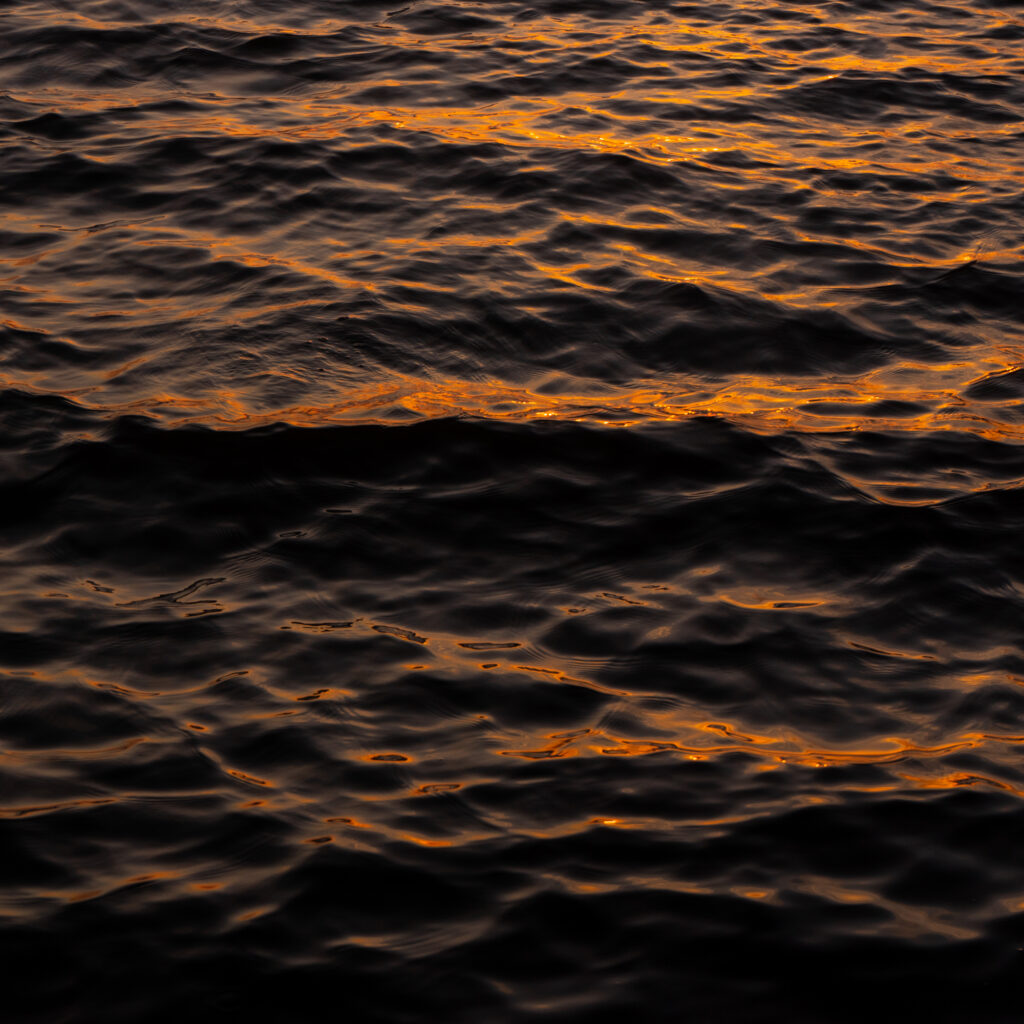 昼間の水面は上空からの光を目一杯に受けながらゆらめき、対して夕暮れ時には斜めの光が波を赤く染め上げます。また、月との距離で潮位や波の大きさ・リズムまでもが大きく変化します。