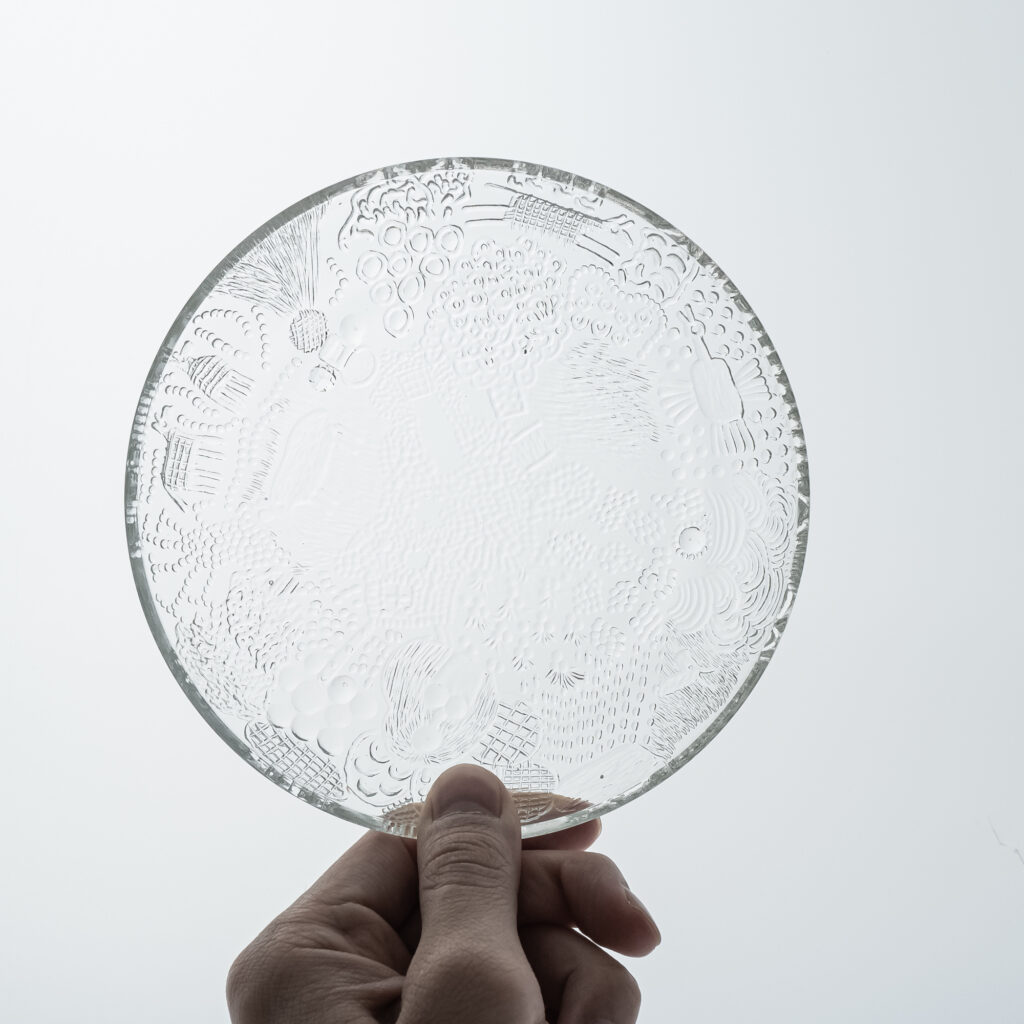 オイバ・トイッカとタピオ・ヴィルカラ、この2人のデザイナーに共通しているのは、「目で見えているもの以上のもの」を見ようとする姿勢です。ガラスに描かれる絵柄は、必ずしも目で見た通りの姿かたちをしているわけではなく、自然物を取り巻く空気やそこから滲み出るオーラのようなものを捉えているように感じます。