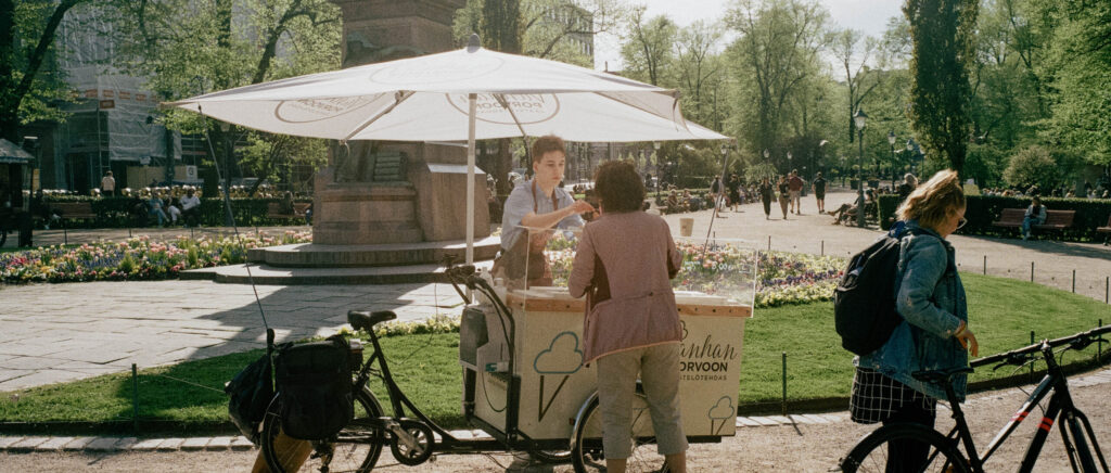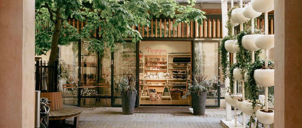 街のイメージをつくるのは、そこに佇むお店たち。観光客と住民が入り混じるヘルシンキでは、大通りはもちろん、小径や路地にもかわいらしいお店が建ち並びます。彩り溢れる装いが街の空気やアイデンティティをつくりだしています。