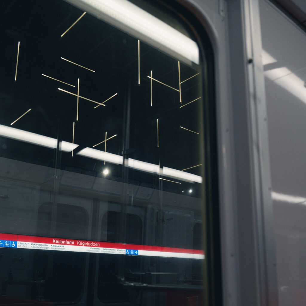 とりわけ特徴的なこのデザインは、ケイラニエミ駅。地元のアーティストによって、「Light Weave」と呼ばれる照明がデザインされました。