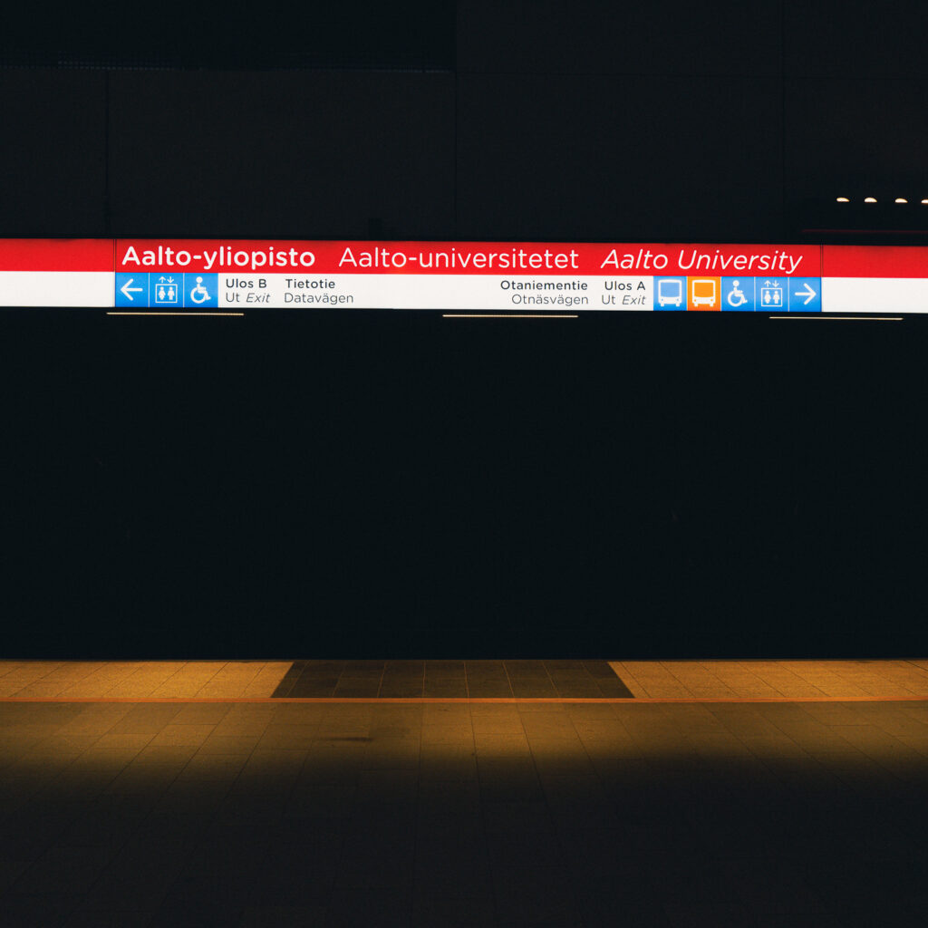 この駅で降りる機会はあまりありませんでしたが、アアルト大学駅のひとつ前だったので白と黒のスタイリッシュな照明は電車を降りる目印となっていました。