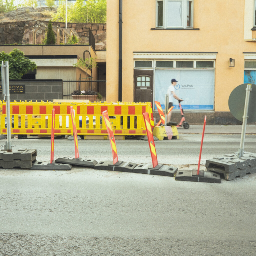 フィンランドでよく見る光景。街を歩いていると、必ずどこかの道で工事がされているように感じるのは気のせいでしょうか。